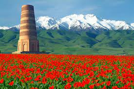 Киргизия – гористая страна в Центральной Азии. Она расположена вдоль Великого шелкового пути – древней торговой дороги между Китаем и Средиземноморьем. В горах Тянь-Шань, которые окружают этот караванный путь и занимают большую часть страны, обитают снежные барсы, рыси и овцы. На юге страны находится город Ош, история которого насчитывает более тысячи лет. Он славится огромным базаром, где когда-то останавливались купцы, следовавшие по Великому шелковому пути.